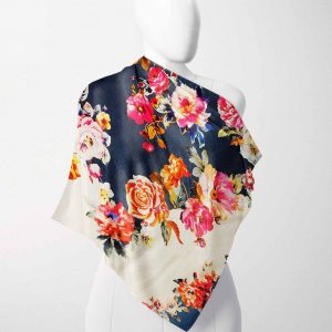 Florals on Gingham Wool Blend Stole - Beige, Multi