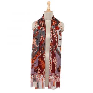 Pure Wool Paisley Border Mens Shawl Lohi - White, Walnut