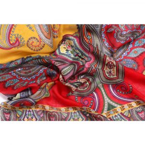 Wild Textures Weave Wool Blend Scarf - Crimson Beige