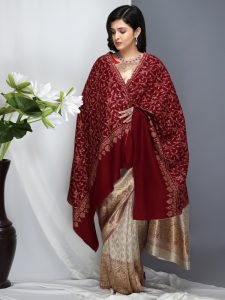 Sozni Dordaar Hand Emb Wool Shawl - Cloud, Multi