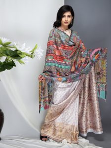 Kusumrekhā Floral Kani Shawl - Navy