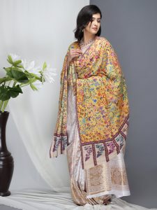 Zeb Palla Handloom Kani Pashmina Shawl - Saffron, Teal