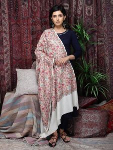 Phooldar Kani Shawl with Zari - White Multi