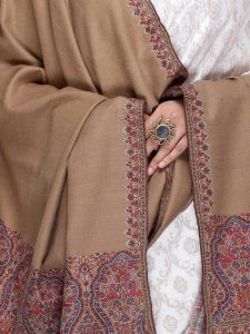 Handloom Woven Pure Pashmina Mens Kani Shawl - Cream, Multi