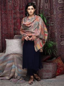 Zia Kalamkari Wool Shawl - Bengaluru Beige