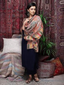 Almond Paisley Merino Wool Hand Beaded Wrap - Blue