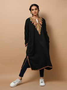Tangerine & Black Ari Hand Emb Wool Phiran