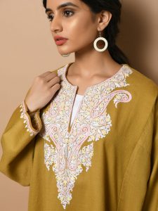 Ari Embroidery Pure Wool Dressing Gown - Sunset Gold