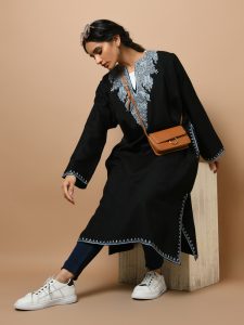 Pure Wool Ari Embroidery Palledaar Shawl – Red & Black
