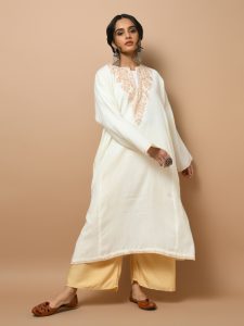 Anaya Kalamkari Wool Shawl - Beige Multi