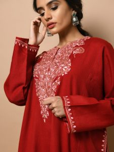 Toosha Beige Sozni Hand Emb Wool Shawl