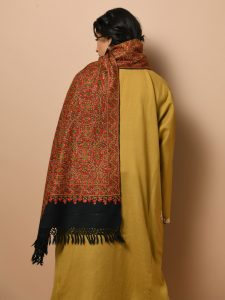 Bahaar Palla Handloom Kani Pashmina Shawl - Sunflower, Aqua Blue