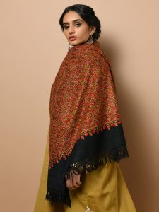 Kalam Paisley Wool Hand Embroidery Stole - Moon Grey