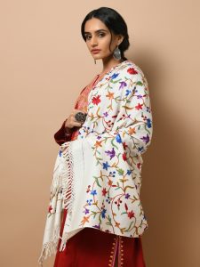Nafees Kalamkari Fine Wool Shawl - Cream, Multi