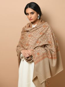 Zari Wool Dorukha Jaaldar Shawl – Gold, Thyme Green