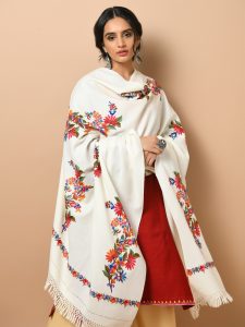 Zari Wool Dorukha Jaaldar Shawl – Pearl Mint
