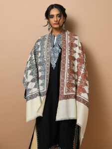 Sozni Jama Handloom Pashmina Shawl - Prism, White