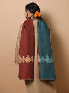 Phool Palla Kani Dorukha Pashmina Shawl - Camel, Grey
