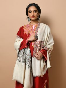 Badaam Border Kani Reversible Shawl - Cranberry Beige