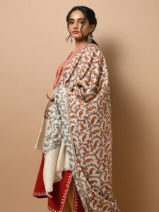 Lashkar Jaal Kani Wool Shawl - Cream, Latte