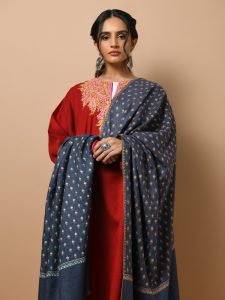 Azure Blue & Melange Handloom Pashmina Shawl