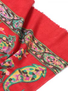 Abeer Kani Weave Wool Shawl - Roorkee Red