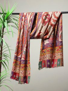 Les Grand Fleurs Wool Stole - Khaki Green, Offwhite