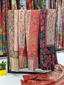 31 Oct Kani Stole with Phooldaar Border AND Kani Stole with Heavy Floral Border