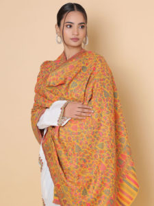 Boteh Rangin Handloom Pashmina Sozni Shawl - Navy Multi
