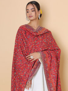 Masakali Ari Tichdaar Wool Stole - Crimson