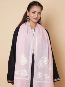 Zari Wool Dorukha Jaaldar Shawl - Scarlet, Ivory