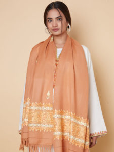 Kashida Kari Zari Pashmina Shawl - Tonal Ivory