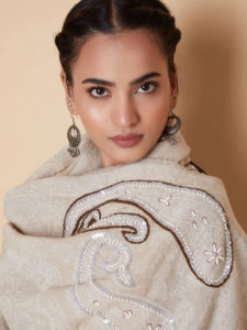 Roaring Tigress Hand Emb Wool Stole - Navy, Multi