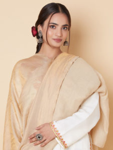 Busaat-e-Gul Kani Weave Wool Shawl - Saffron, Beige