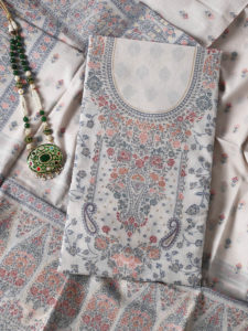 Handloom Pashmina Phool Jaal Pashmina Shawl - Ivory, Black