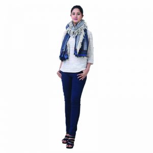 Madras Check Pure Wool Mens Shawl – Navy Beige