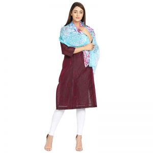Teal Blue Paisley Pure Wool Triangle Scarf