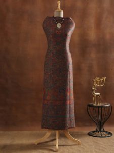 Chinar Bagh Hand Emb Wool Stole - Rust, Black
