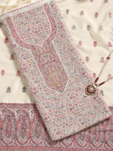 Busaat-e-Gul Kani Weave Wool Shawl - Beige, Offwhite