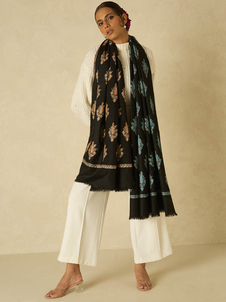 Feature: Pure Wool Ari Embroidery Dordaar Shawl – Midnight Black
