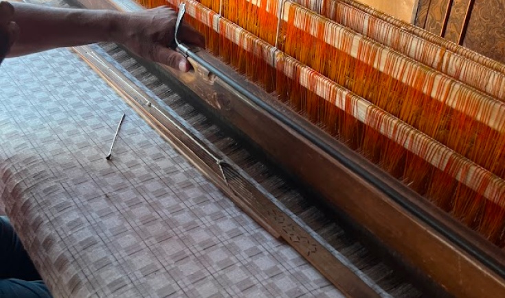 A Kani shawl isn’t embroidered—it’s woven. Tiny wooden sticks, called kanis, act like multiple weft needles. Each stick carries a different color, and together they create the rich, tapestry-style motifs that Kani shawls are famous for.