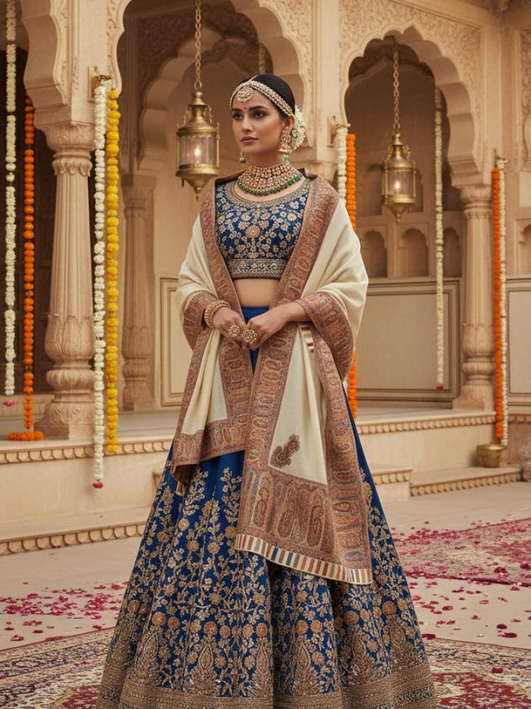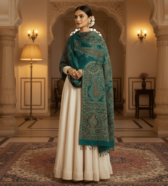 A luxury shawl instantly makes your wedding ensemble look better. We handcraft every piece at KCS Kashmir Shawl Emporium precisely, mixing classic patterns with modern beauty.