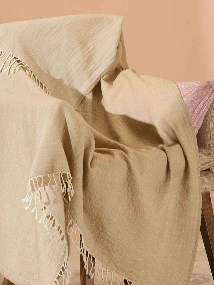 - Sunheri Jaal Reversible Sofa Throw – Ivory Honey – A reversible piece that fits perfectly with minimal décor.