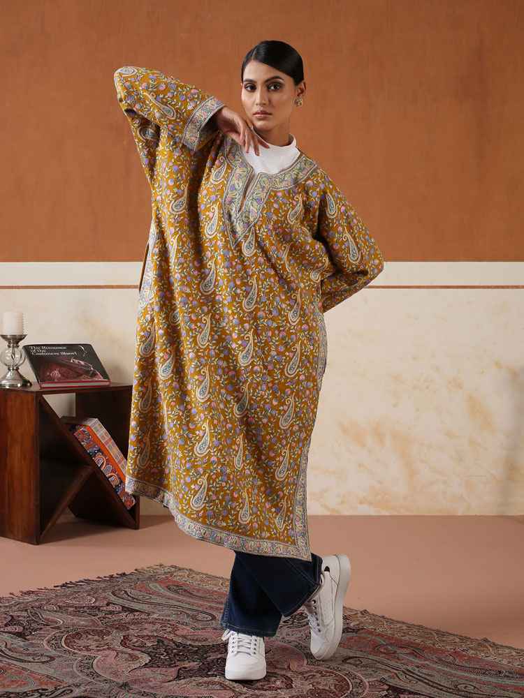 Phirans are traditionally made of wool, which keeps you warm in the cold Kashmir weather. Modern phirans also use velvet for a richer, more luxurious look. Wool phirans are comfortable and perfect for layering over sweaters or inner tops, while velvet phirans are ideal for special occasions.