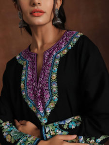 Almond Paisley Sozni Jamawar Stole - Navy Saffron