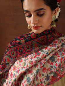 Noorani Palla Handloom Kani Pashmina Shawl - Turquoise, Offwhite