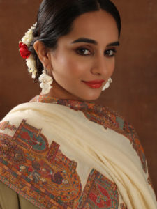 Zia Kalamkari Wool Shawl - Bengaluru Beige