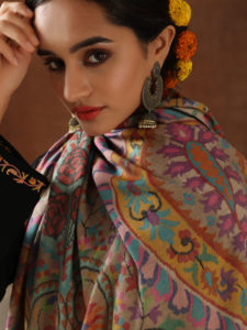 Mehermaan Ikat Weaves Wool Men's Shawl - Monochrome Black