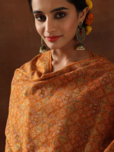 Handloom Pashmina Shawl Fishbone Weave – Cognac Brown