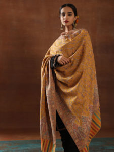 Numaish Palla Aksi Pashmina Stole - Turquoise, Taupe